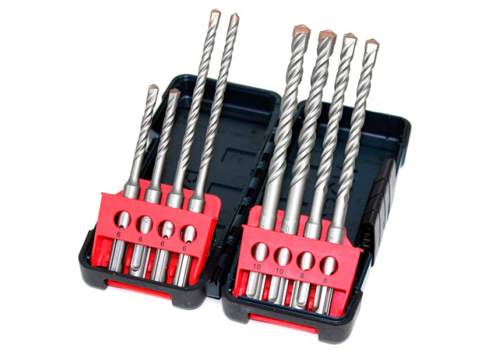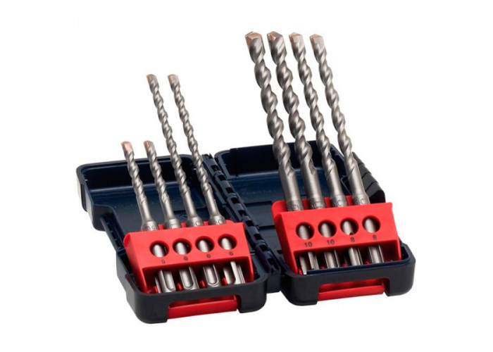 • 8 міцних бурів Bosch Tough Box SDS-plus-3 розмірами 6x110 мм, 6x160 мм, 8x160 мм, 10x160 мм (по 2 шт кожного розміру) з хвостовиками SDS-plus.