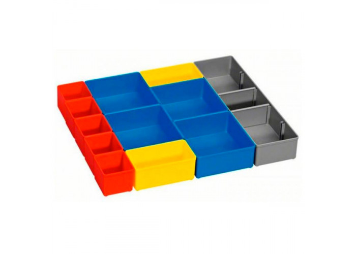 12 контейнерів Bosch I-Boxx 53 inset box різних розмірів для зберігання дрібних деталей. Підходить для розміщення в кейсі I-Boxx 53.