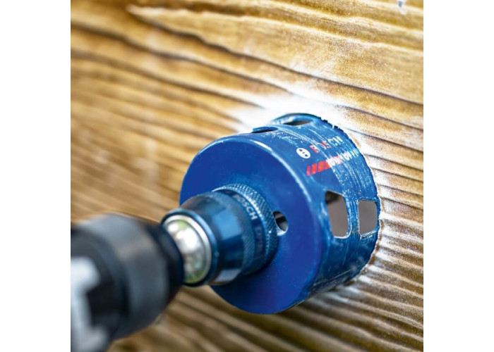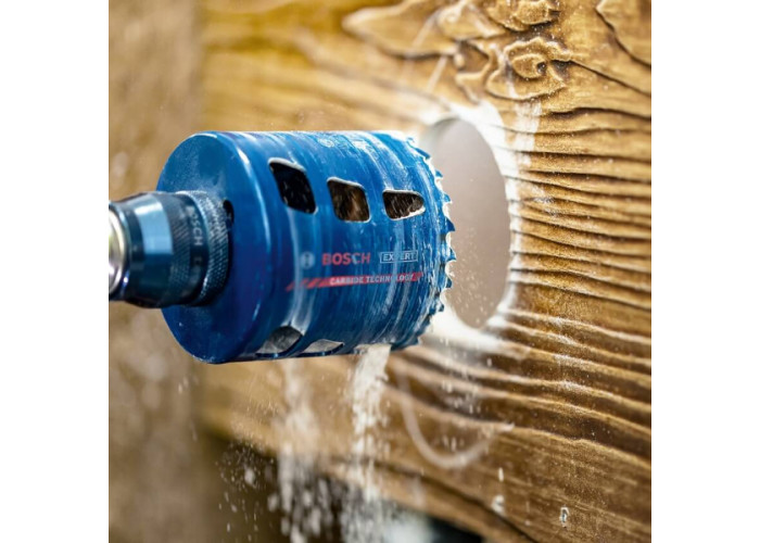 • Основою високої зносостійкості слугує технологія Bosch Carbide. Зуби кожної коронки виготовлені з дрібнозернистого твердого сплаву, мають оптимально підібрану твердість, приварені до корпусу лазерним зварюванням і багаторазово заточені для отримання точної та стійкої форми різу. Така конструкція дає змогу коронкам ефективно працювати не лише з деревиною та металом, а й із нержавіючою сталлю, цеглою, м'якою керамічною плиткою та армованими пластиками. Завдяки цьому набір підходить для широкого кола завдань на одному об'єкті без необхідності частої зміни оснащення.