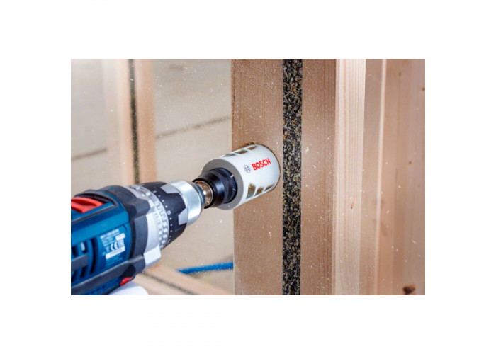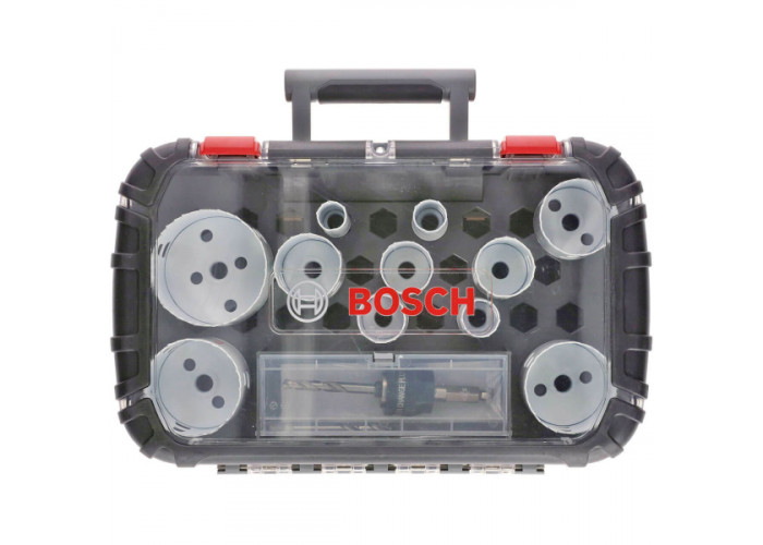 11 коронок Bosch Progressor для свердління металу та деревини. Насадки діаметрами 20 мм, 22 мм, 25 мм, 32 мм, 35 мм, 40 мм, 44 мм, 51 мм, 60 мм, 68 мм, 76 мм, робочою довжиною 44 мм.