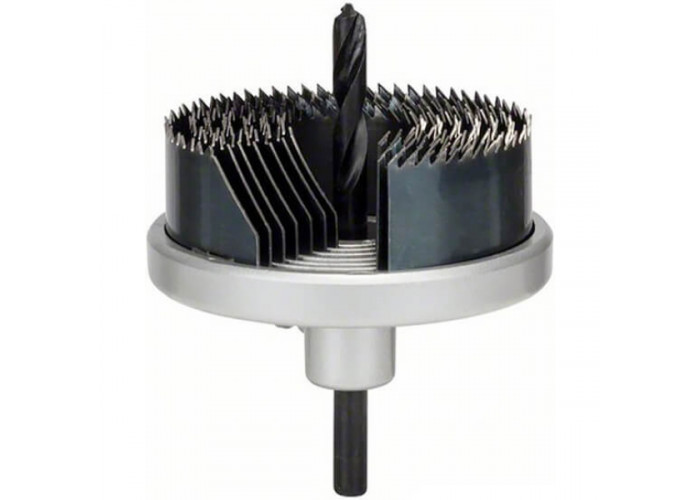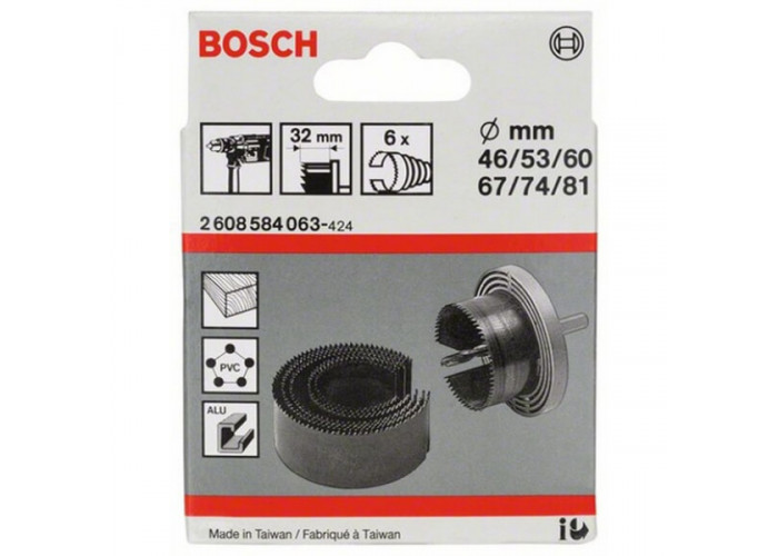 Набір пил кільцевих по дереву Bosch 46-81 мм складається із 6 штук. Розміри у межах від 46 до 81 мм. Ідеально пропилюють круги у дереві, гіпсокартоні, тирсовій плиті, фанері, пластику та ін. Тип хвостовика — шестигранник. Набір складається з 6 пиляльних кругів різних діаметрів, тримача, центрувального свердла. Постачається у картонній коробці.