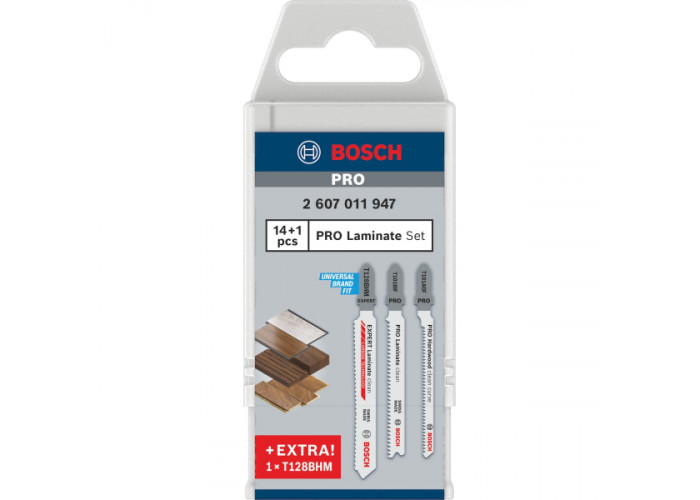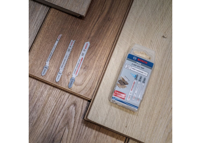 - Набір пиляльних полотен для лобзика Bosch Pro Laminate Set є професійним рішенням для точного й акуратного різання ламінованих матеріалів і підлогових покриттів. Комплект розроблений спеціально для майстрів з укладання підлог, монтажників та оздоблювачів, яким важливо отримувати чистий різ без відколів і пошкодження декоративного шару навіть при інтенсивній щоденній роботі.