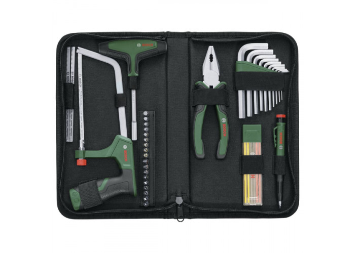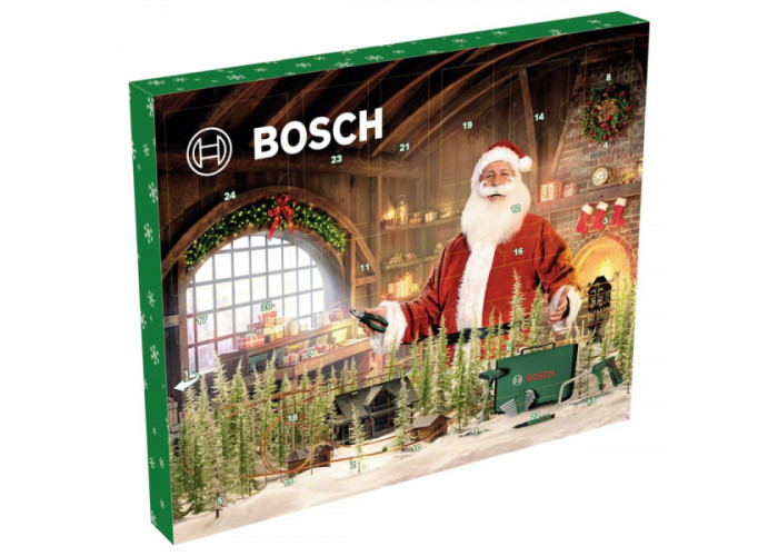 Bosch Advent Calendar – набір інструментів з 41 предмета, який представляє собою адвент-календар з 24 дверцятами, за кожними з яких ховається практичний подарунок для домашніх майстрів. У комплект входить викрутка, плоскогубці, ножівка, 2 пилкові полотна, 10 шестигранних ключів, 18 біт, 6 різнокольорових маркерів і футляр для зберігання.