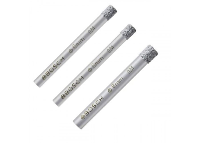 - До комплекту входять два свердла діаметром 6 мм і одне свердло діаметром 8 мм. Довжина інструментів становить 66 мм.