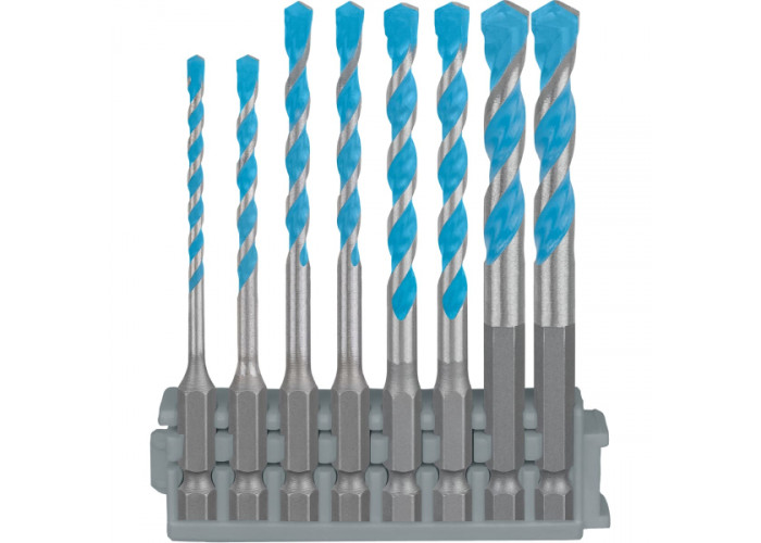 - В набір Bosch Expert HEX-9 MultiConstruction входить 8 свердел діаметрами 3 мм, 4 мм, 5 мм (2 шт), 6 мм (2 шт), 8 мм (2 шт).