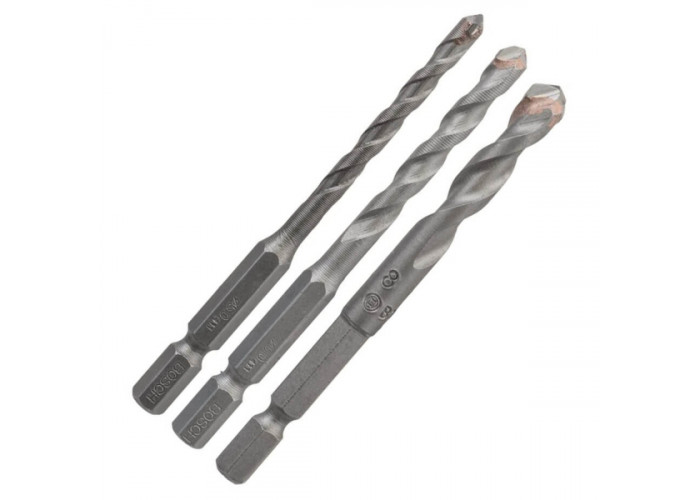 Три свердла Bosch Hex-9 Ceramic (діаметром 5, 6 і 8 мм) продумані для роботи у матеріалах, які швидко нагріваються, — мармурі, цеглі та керамічній плитці. Тип хвостовика — шестигранник 1/4”. Загальна довжина аксесуарів по 90 мм.