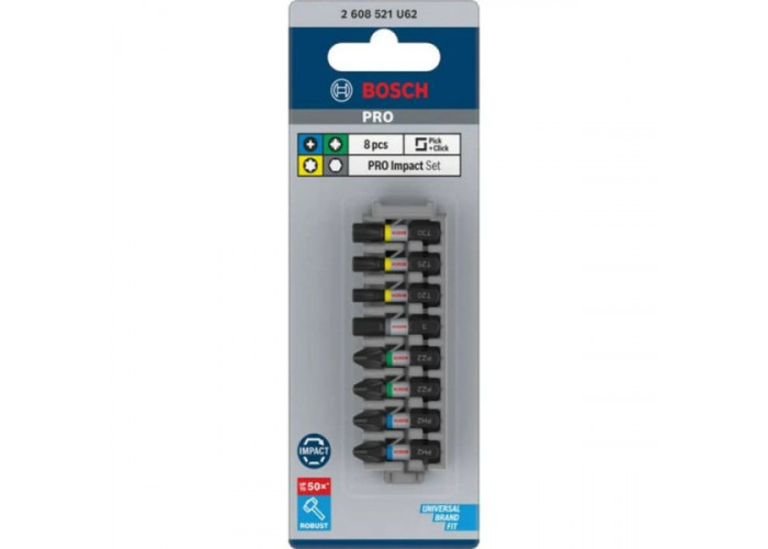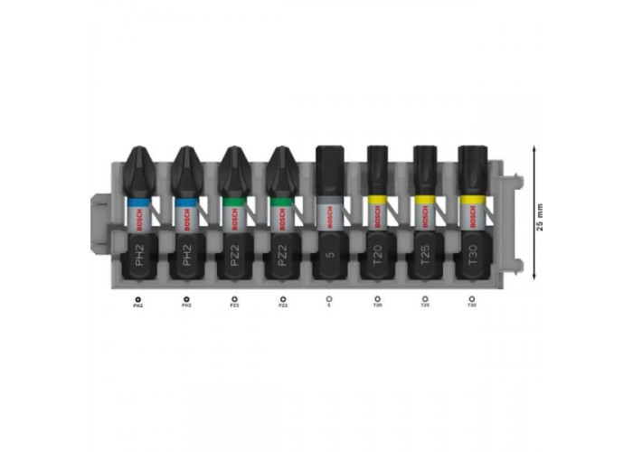 Опис набору ударних біт Bosch PRO PH, PZ, H, TX 25 мм, 8 шт: