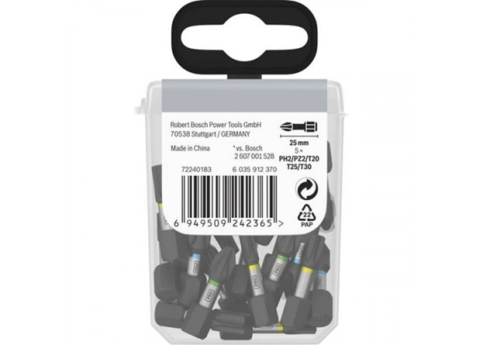 Комплектация Набор бит, 25 шт: PH2 (x5), PZ2 (x5), T20 (x5), T25 (x5), T30 (x5)