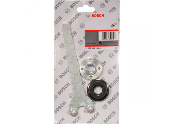 Набор из зажимного ключа, круглой гайки и фланца для болгарок Bosch.