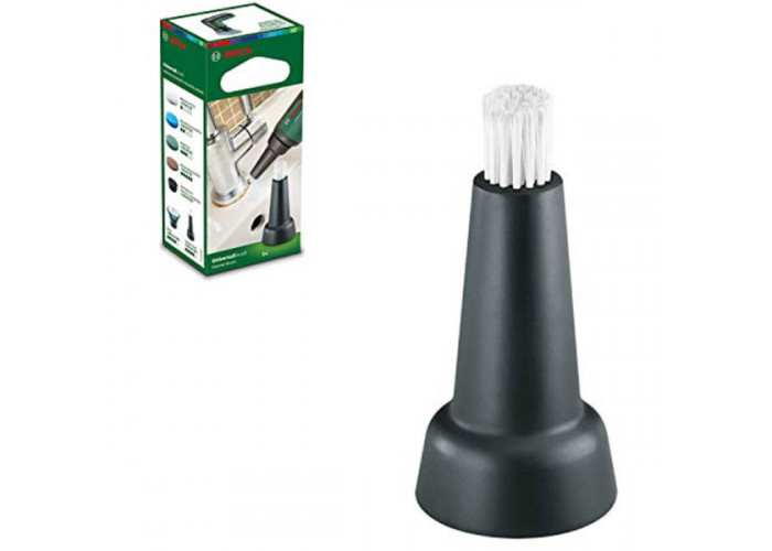 Насадка для універсальної щітки Bosch UniversalBrush — маленька щіточка зі штучним ворсом, яка чистить важкодоступні місця, як згини труб, кути чи профілі. Щітка обертається зі швидкістю 215 об/хв. Кріпиться легко, довжина сягає Діаметр — 18 мм. Постачається у картонній коробці.