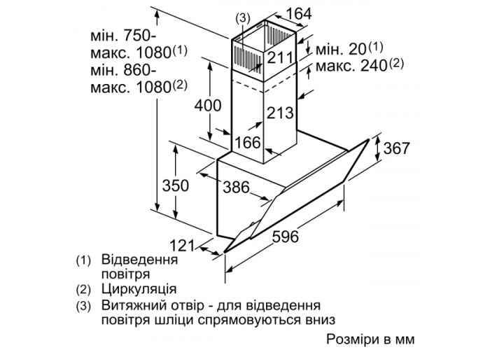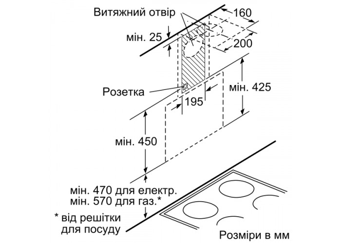 - Витяжку можна налаштувати для роботи в режимі рециркуляції за допомогою спеціального комплекту (не входить в комплект поставки).