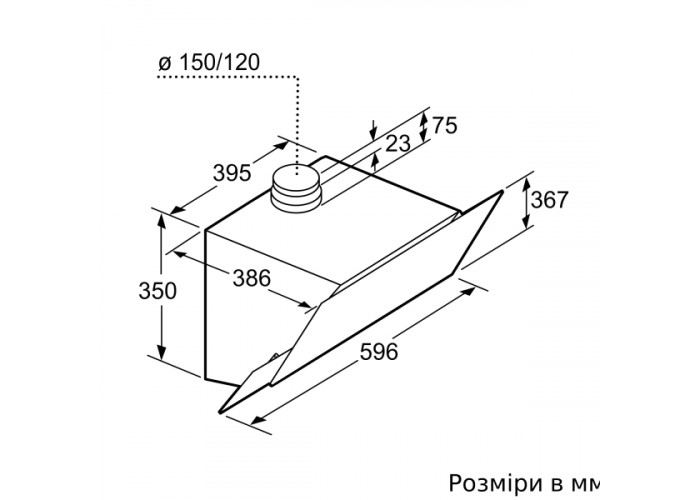 - Вихідний патрубок 150 мм в діаметрі. У комплекті є патрубок 120 мм.