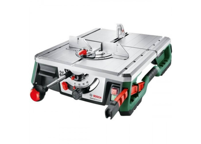 Настільна пила Bosch AdvancedTableCut 52 високоефективно на побутовому рівні ріже деревину максимальною глибиною 52 мм (90°), 35 мм (45°). Кріпиться до електропилки пиляльне полотно за допомогою системи SDS фіксації. Ріже диск деревину під вертикальним кутом від 0° до 45°, кут пиляння по горизонталі — ±60°. Потужність електродвигуна — 550 Вт. Кількість обертів сягає 8200 об/хв, пристрій утворює мінімальну кількість вібрацій (вмонтована технологія NanoBlade). Важить інструмент 8.5 кг. Доставляється зі опорою заготовки, універсальним упором, додатковим упором, підсувною палицею, ключем, опорою заготовки.