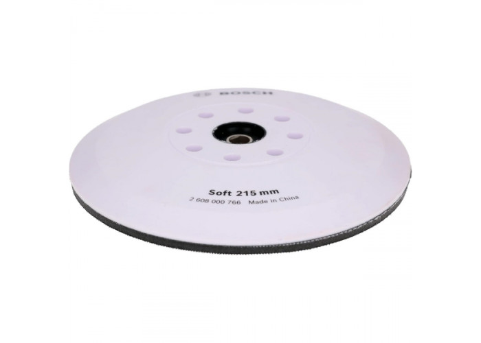 Опорна шліфувальна тарілка 2608000766 діаметром 215 мм призначена для фіксації шліфувальних аркушів у шліфмашинах Bosch GTR 550 і GTR 55-225. Завдяки особливій конструкції та використанню м'якої піни, вона забезпечує якісну обробку навіть складних поверхонь. Кріплення на липучці спрощує заміну шліфувального матеріалу, а 8 отворів в основі сприяють ефективному відведенню пилу.