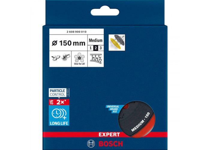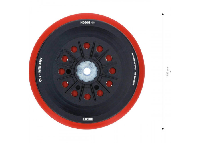 - Універсальна опорна шліфувальна тарілка Bosch Expert Multihole діаметром 150 мм — це надійний і продуманий елемент оснащення, розроблений для професійного та напівпрофесійного шліфування.