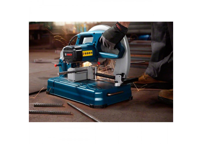 - Для швидкого, високопродуктивного поздовжнього різання, а також різання під нахилом 45 градусів металевих заготовок, деталей, виробів слугує пила по металу Bosch GCO 14-24 J.