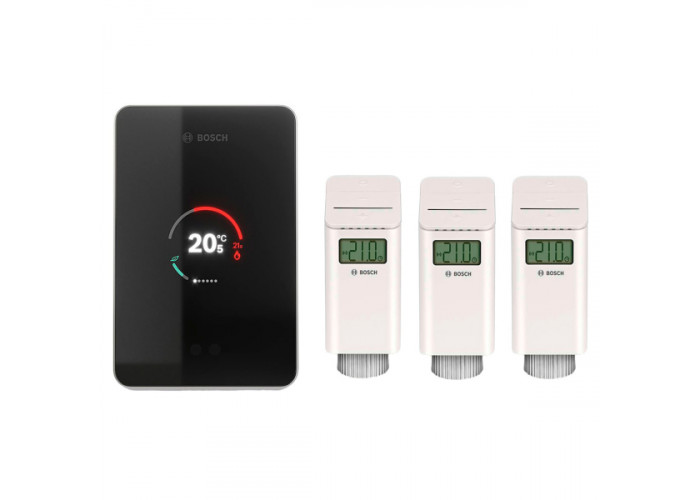 - Пакетна пропозиція Bosch EasyComfort 3B містить кімнатний термостат EasyControl CT 200 B і три термоголовки Smart Radiator Thermostat.