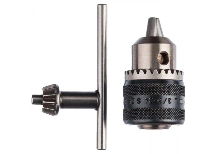 Цанговий ключовий патрон Bosch для кріплення насадок з хвостовиками діаметрами від 1 до 10 мм. Різьба кріплення 3/8 дюйма-24 UNF. Підходить до ударних тп безударних, акумуляторних дрилів.