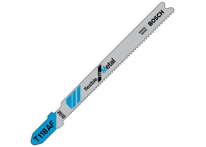 - Пилка Flexible for Metal T 118 AF виготовлена з біметалу — матеріалу, який виходить при зварюванні швидкорізальної сталі та низьколегованої. Основні його властивості — в'язкопружність та твердість. Міцне, зносостійке полотно виконує свої функції довго та ефективно.