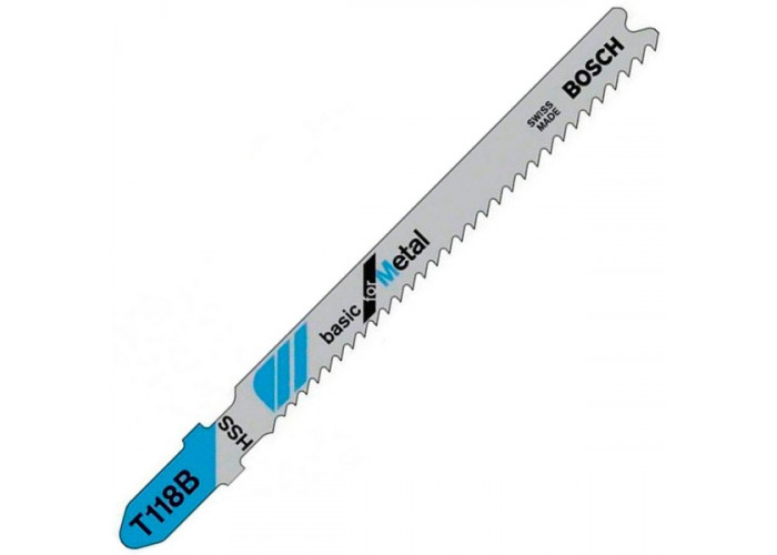 - Пилка Basic for Metal T 118 B виготовлена з високолегованої швидкорізальної сталі HSS, яку використовують у виробництві оснащення для металообробки. Цьому твердому полотну властиві висока здатність навантаження та довгострокова працездатність.