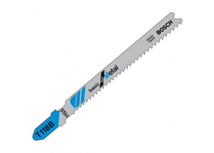 - Пилка Basic for Metal T 118 G виготовлена з високолегованої швидкорізальної сталі HSS, яку використовують у виробництві оснащення для металообробки. Цьому твердому полотну властиві висока здатність навантаження та довгострокова працездатність.