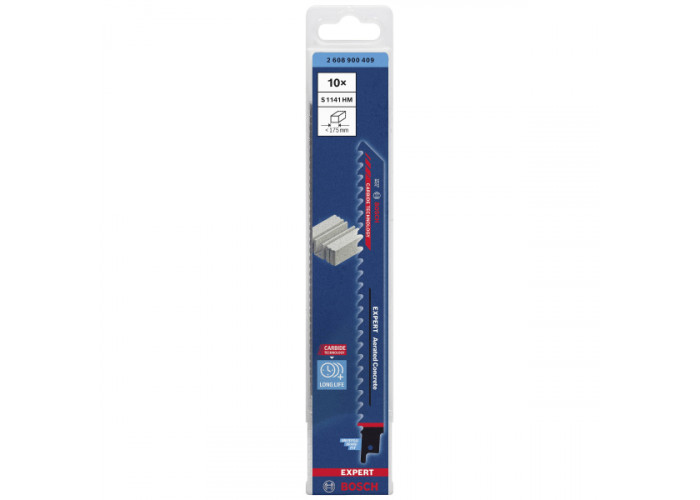 Пиляльне полотно Bosch Expert Aerated Concrete S 1141 HM по газобетону для установки на шабельні пили. Загальна довжина 225 мм. У комплекті 10 шт.