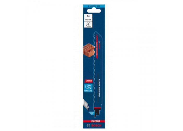 - Характеризується Bosch Expert Hollow Brick S 1543 HM довговічністю різки через впровадження сучасних технологій, використання якісних матеріалів.
