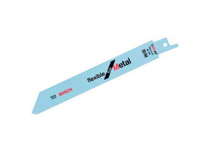 - Полотно Bosch S 922 AF Flexible for Metal — рабочая насадка к сабельным пилам, с помощью которой быстро разрезается листовой металл толщиной 0,7-3 мм, а также тонкие профили, трубы диаметром до 100 мм.