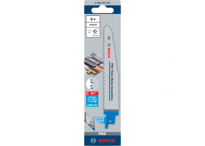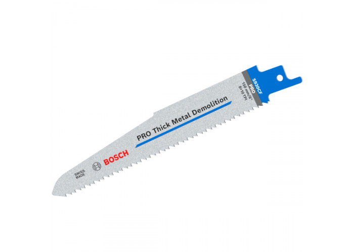 - Пиляльне полотно Bosch Pro Thick Metal Demolition S930CF довжиною 150 мм створено для ефективного різання металевих матеріалів в умовах демонтажу.