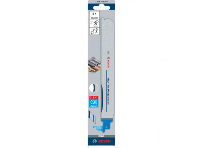 - Пиляльне полотно Bosch PRO Thin Metal precise S 1137 EAF призначається для шабельних пилок, забезпечить ефективне різання тонкого металу (1-3 мм), такого як листова сталь, алюмінієві профілі, кольорові метали, металеві профілі та труби.