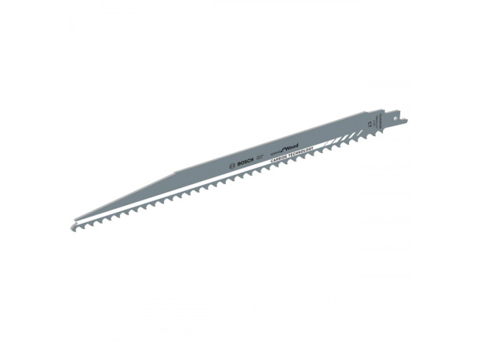 Ножівкове полотно Bosch S 1242 KHM для шабельних пил. Міцне полотно розміром 300x25x1,25 мм з карбідним покриттям. Високоефективна пилка легко розрізає деревину твердих і м'яких порід товщиною до 250 мм, а також справляється з тропічною, свіжою деревиною товщиною до 250 мм.
