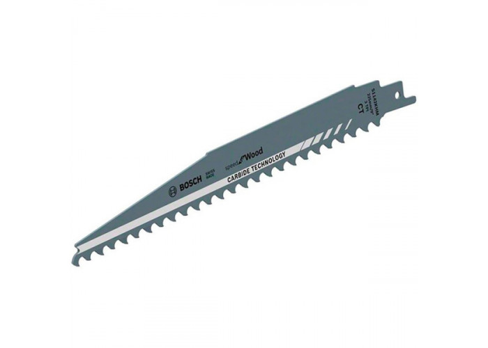 Твердосплавное сабельное пильное полотно Bosch S1142KHM для резки твердой, мягкой, толстой древесины, пиломатериалов, корней (<175 мм).