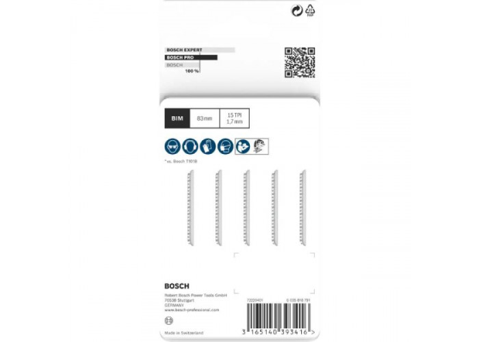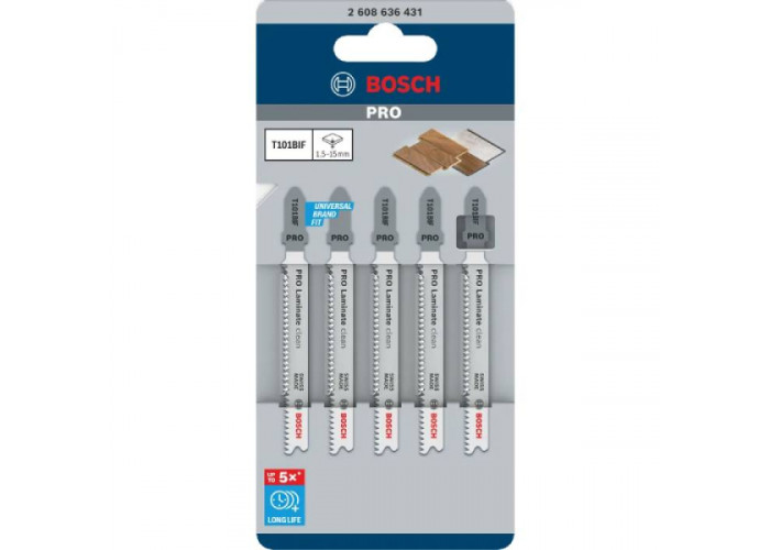 Пильне полотно Bosch PRO Laminate Clean T101BIF призначене для акуратного і чистого розпилу ламінату, пластику та інших твердих облицювальних матеріалів без відколів і задирок. Відмінно підходить для професійного використання при монтажі підлогових покриттів, меблів і декоративних елементів. Виготовлено з біметалу (BIM), має загальну довжину 83 мм і крок зубців 1,7 мм (15 TPI). Оптимальна товщина оброблюваного матеріалу - від 1,5 до 15 мм. Модель T 101 BIF відноситься до категорії Laminate Clean, призначеної для точного і чистого різу. Поставляється в упаковці з щільного картону з євроотвором, в комплекті 2 полотна.