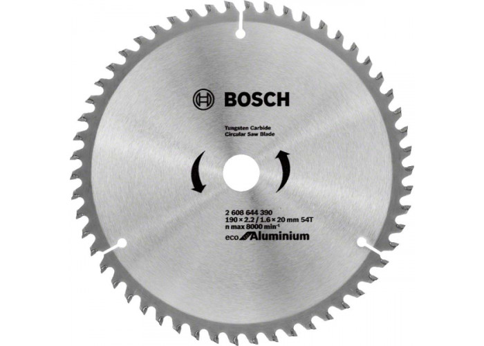 - Відрізний круг Bosch Eco for Aluminium з 54 зубами форми HLTCG призначений розрізати алюмінієві або пластмасові заготовки, роблячи чистий, точний різ шириною 2,2 мм.