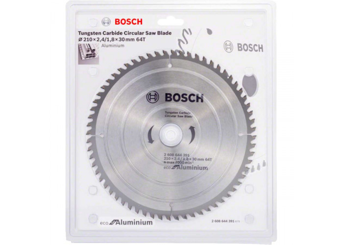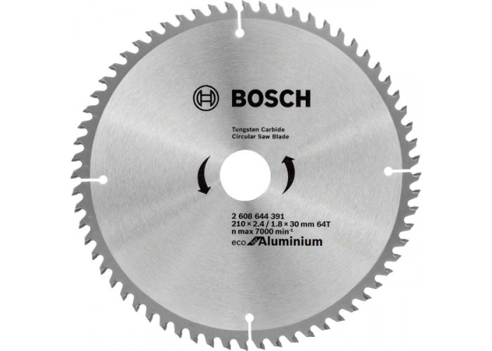 - Відрізний круг Bosch Eco for Aluminium з 64 зубами форми TCG призначений розрізати алюмінієві або пластмасові заготовки, роблячи чистий, точний різ шириною 2,4 мм.
