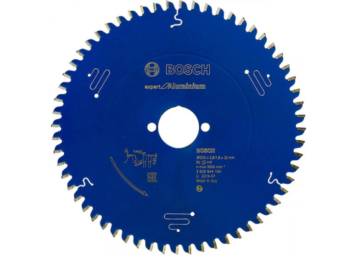 Bosch Expert for Aluminium — кращий пиляльний диск для акуратних пропилів зануреними пилами та ручними циркулярки у кольорових металах, а також пластмасі, епоксидних, волокнистих матеріалах, що поглинають звук, ізоляційних, легких будівельних плитах. Його діаметр 200 мм, посадка 32 мм, товщина 1,8 мм. Прочнейшие 60 зубів форми HTLCG виконують точний пропил шириною 2,8 мм.