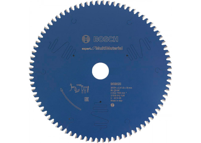 Циркулярний диск Бош Expert for Multi Material 254 мм / 80 зубів підходить для торцювальних та панельних пилок. Діаметр диска — 254 мм, посадкового отвору — 30 мм. Цей круг призначений для дуже тонкого та якісного різання з чистими краями. Універсальний диск відмінно підходить для пиляння всіх порід дерева, легко поріже ламінат, паркет, пластик, склопластик, може різати епоксидні матеріали, ДВП на цементній основі, а також кольорові метали, наприклад мідь, латунь, алюміній та ін.