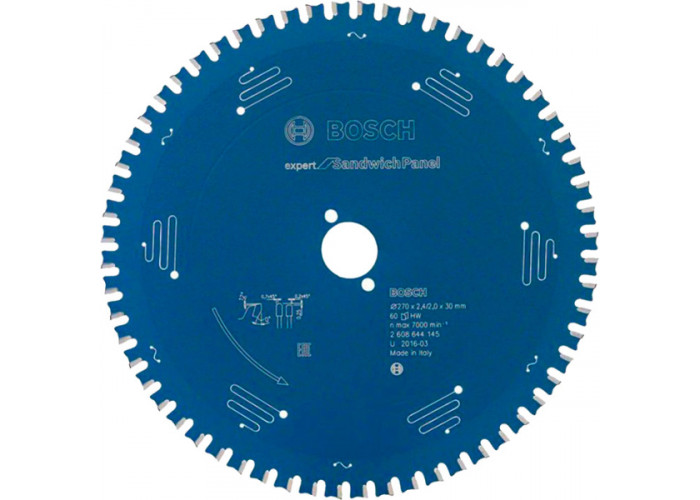 Циркулярний круг Bosch Expert for Sandwich Panel товщиною 2 мм, діаметром 270 мм з посадкою 30 мм підходить для ручних ціркулярок та заглибних пил. 60 зносостійких зубів форми HTLCG гарантують чистий різ шириною 2,4 мм у сендвіч-панелях з листової сталі.
