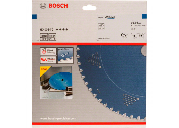 Опис пиляльного диска Bosch Expert for Steel 184х2х20 мм 48 зубів: