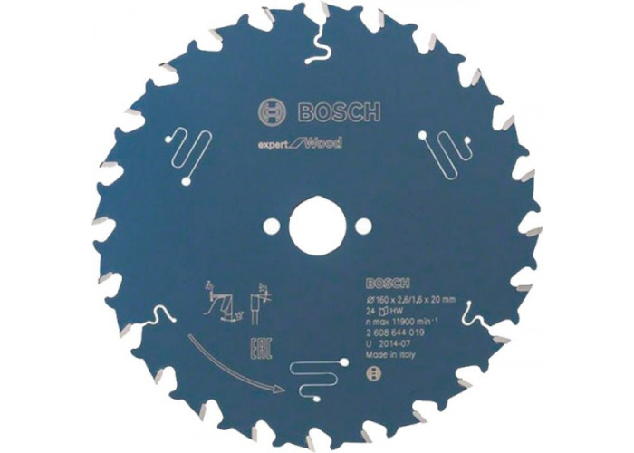 Розпиляти деревину занурювальною пилою або ручною циркуляркою, зробивши швидкий поздовжній та поперечний пропил шириною 2,6 мм допоможе пиляльний диск Expert for Wood. Цей круг діаметром 160 мм з посадкою 20 мм, товщиною 1,6 мм з 24 суперміцними зубами форми ATB з позитивним кутом нахилу.