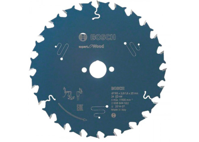 Розпиляти деревину занурювальною пилою або ручною циркуляркою, зробивши швидкий поздовжній та поперечний пропил шириною 2,6 мм допоможе пиляльний диск Expert for Wood. Цей круг діаметром 165 мм з посадкою 20 мм, товщиною 1,6 мм з 24 суперміцними зубами форми ATB з позитивним кутом нахилу.
