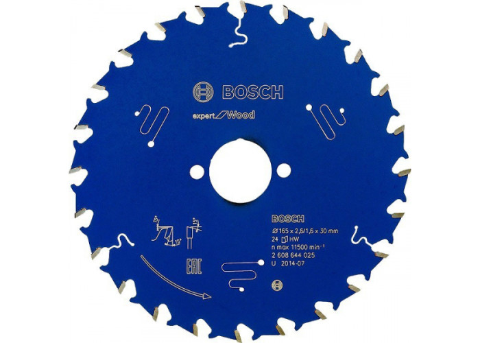 Розпиляти деревину занурювальною пилою або ручною циркуляркою, зробивши швидкий поздовжній та поперечний пропил шириною 2,6 мм допоможе пиляльний диск Expert for Wood. Цей круг діаметром 165 мм з посадкою 30 мм, товщиною 1,6 мм з 24 суперміцними зубами форми ATB з позитивним кутом нахилу.