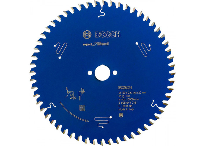 Розпиляти деревину занурювальною пилою або ручною циркуляркою, зробивши бездоганно чистий поздовжній та поперечний пропил шириною 2,6 мм допоможе пиляльний диск Expert for Wood. Це круг діаметром 190 мм з посадкою 20 мм, товщиною 1,6 мм з 56 суперміцними зубами форми ATB з позитивним кутом нахилу.