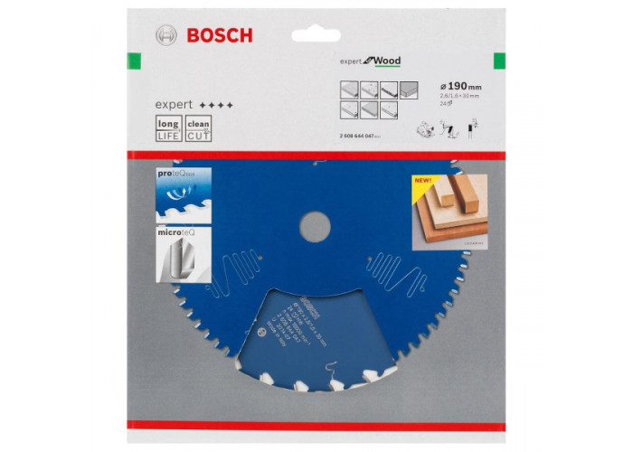 • Особливістю диска є використання зубів MicroteQ — запатентованої технології Bosch, що базується на особливо твердій карбідній крихті, що надає інструменту виняткової стійкості до зношування. Додаткове захисне покриття ProteQtion знижує тертя, захищає від перегріву і запобігає корозії, що збільшує термін служби диска.