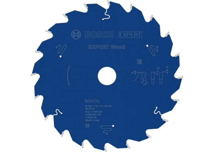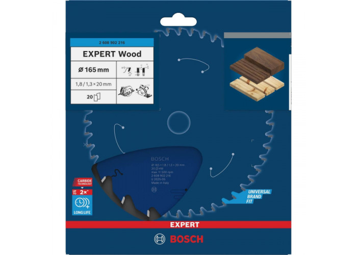 - Пиляльний диск Bosch Expert Wood 165x1.8/1.3x20 мм з 20 зубами ATB розроблений для ручних циркулярних пилок і орієнтований на швидкий, стабільний та акуратний розкрій деревини та композитних матеріалів.