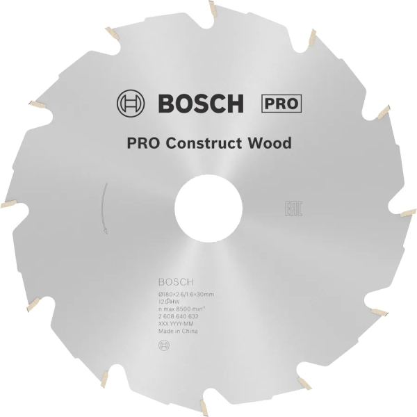 Пиляльний диск Bosch PRO Construct Wood 180×2,6×30 мм, 12 FWF