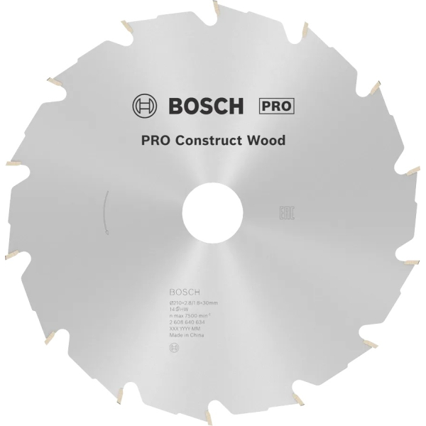 Пиляльний диск Bosch PRO Construct Wood 210×2,8×30 мм, 14 FWF