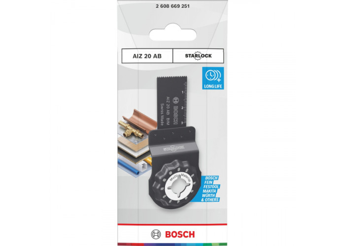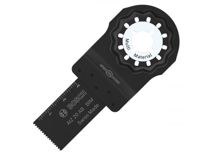 - Занурювальне пиляльне полотно Bosch AIZ 20 AB Multi Material з робочою шириною 20 мм і довжиною 30 мм призначене для виконання точних і акуратних різів за допомогою осцилюючих багатофункціональних інструментів.