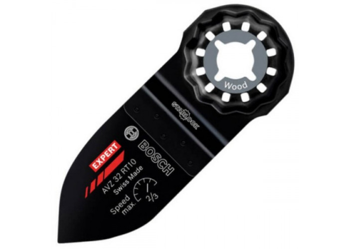 - Полотно Bosch Expert AVZ 32 RT4 з робочою шириною 32 мм і глибиною занурення 53 мм розроблено для дуже тонкого шліфування вузьких щілин і порожнин, дозволяючи досягати важкодоступних місць.