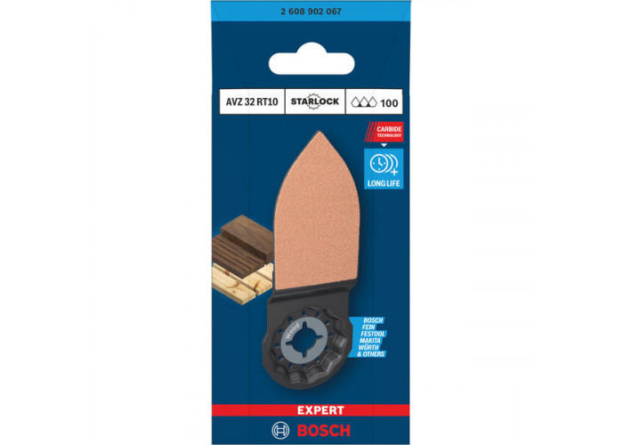 Занурювальне пильне полотно Bosch Expert AVZ 32 RT10 розміром 32x53 мм розроблено для багатофункціональних інструментів, забезпечуючи точне і довговічне шліфування в дуже вузьких і важкодоступних місцях. Кріплення Starlock.